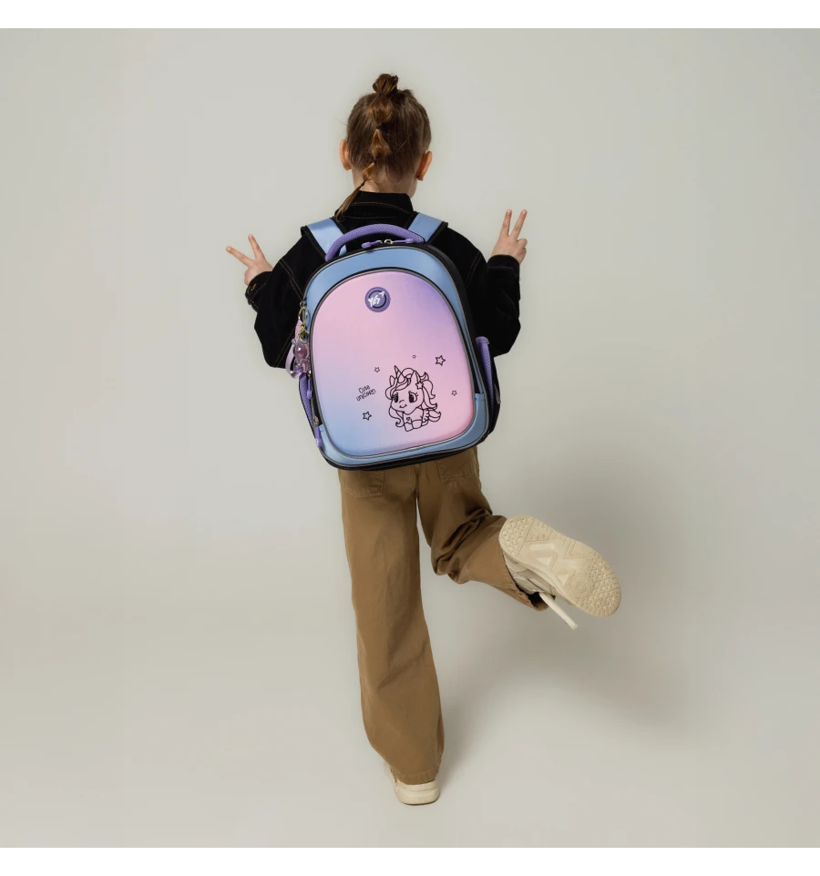 Рюкзак Yes S-109 Cute Unicorn просто створений для маленької мрійниці, яка завжди прагне чогось чарівного. Ніжний градієнт кольорів у поєднанні з милим казковим однорогом перенесе вашу дівчинку у фантастичний світ, де кожен день сповнений магії та нових звершень. Стильний брелок доповнює образ.