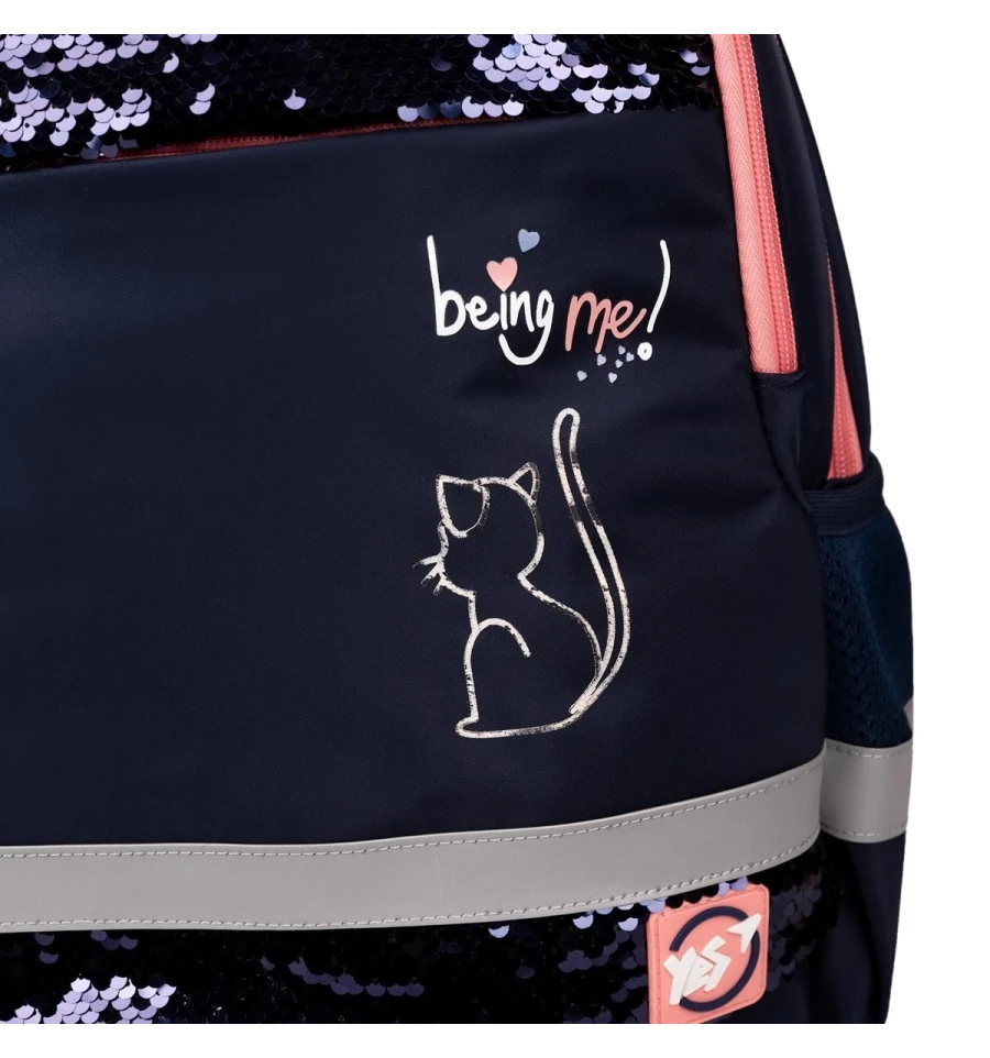 Принт кошеня на шкільному рюкзаку YES S-52 Ergo Be Like a Cat нагадає про улюблену тваринку, наповнюючи теплом та піднімаючи настрій маленькій дівчинці.