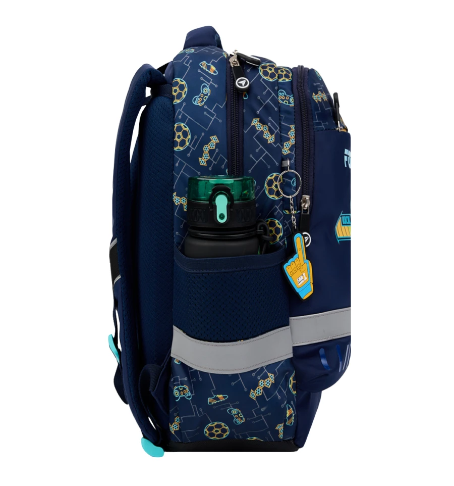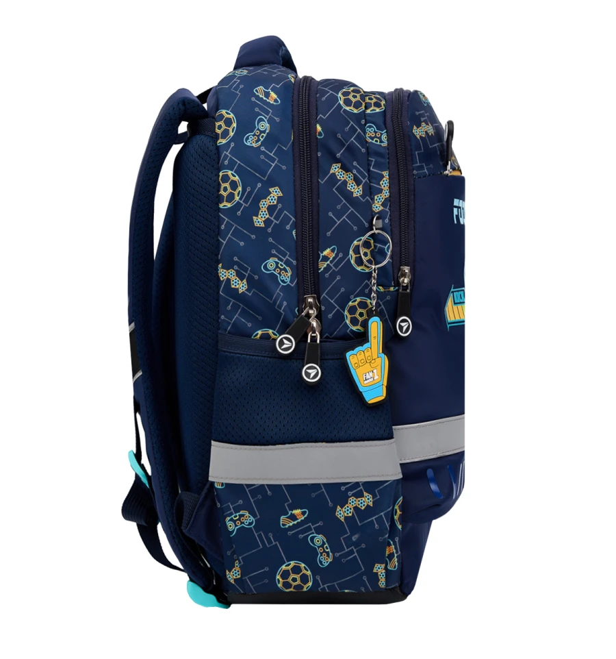 Принт футбольних м‘ячів та бутсів на шкільному рюкзаку YES S-52 Ergo Football Gamer, прикольний брелок надихнуть школяра, який цікавиться футболом, і додадуть впевненості. Рюкзак стане улюбленим супутником школяра.