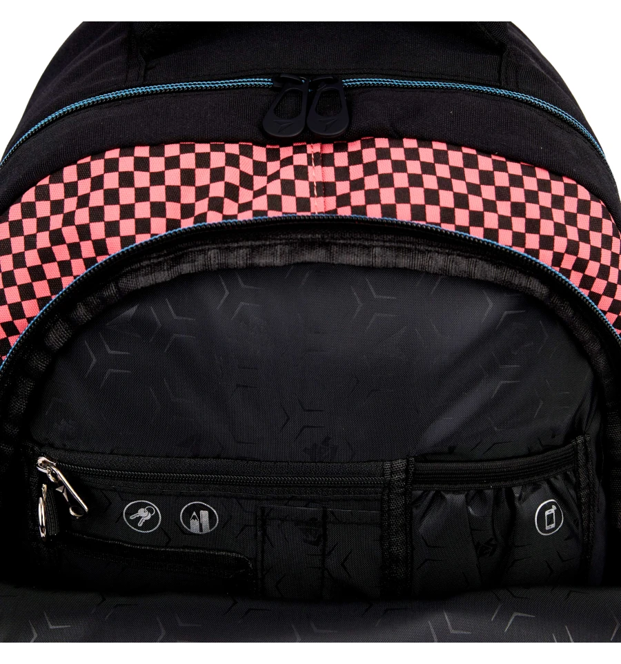 - 2 просторі передні кишені для шкільного приладдя, пеналу та інших речей невеликого розміру;