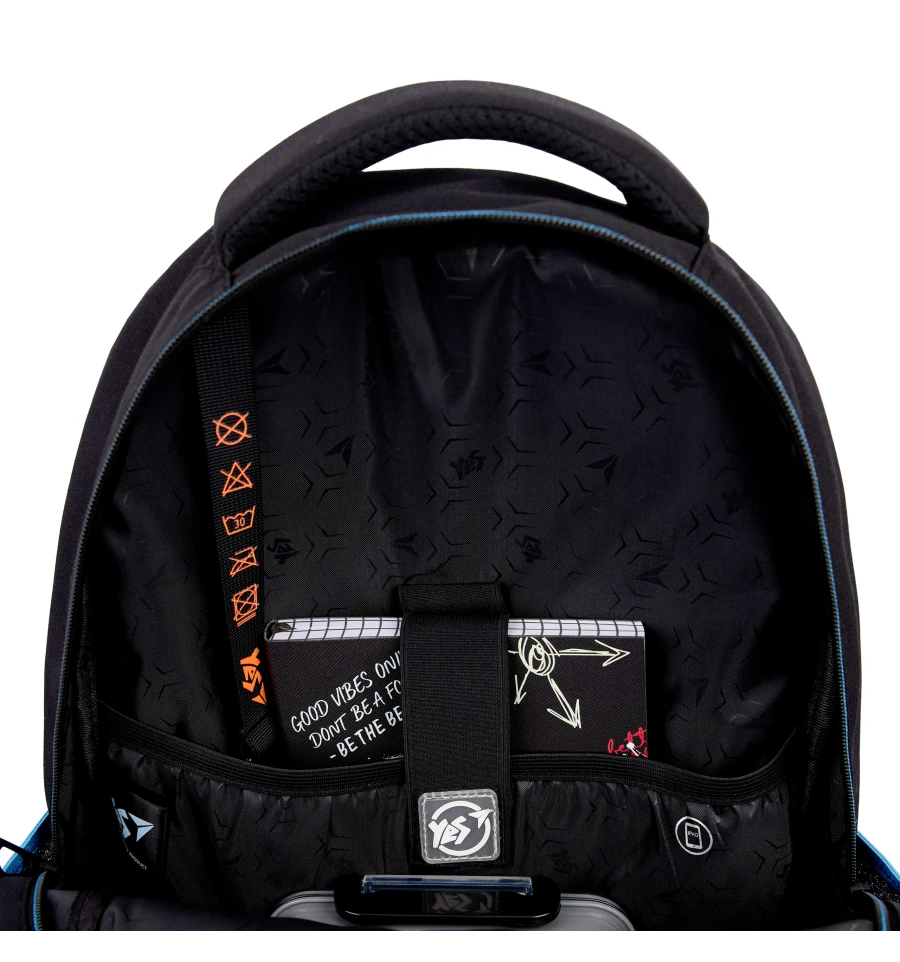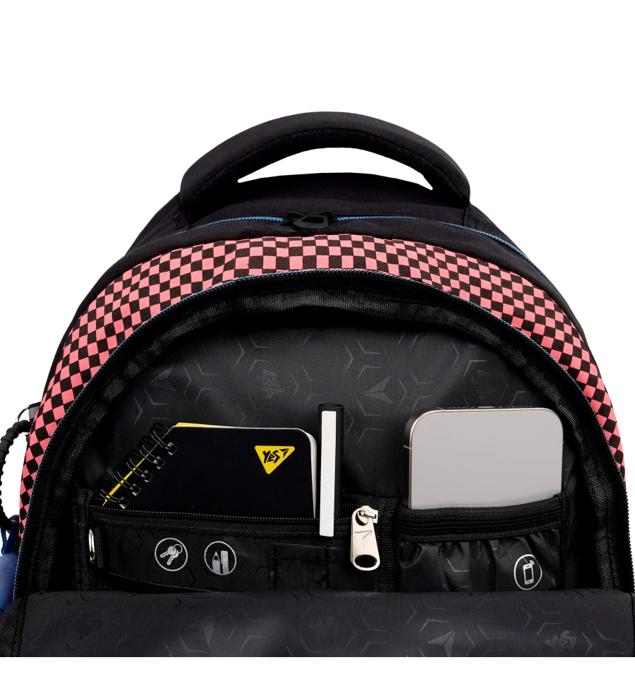Рюкзак TS-48 від бренду Yes має два просторих відділення для розміщення всіх необхідних речей: підручників, зошитів, а також, наприклад, спортивної форми для відвідування фітнес клубу після школи. Якщо треба взяти з собою планшет або ноутбук, у середині є кишеня з захисною флісовою підкладкою спеціально для гаджетів. І, звичайно, кишеня для телефону.
