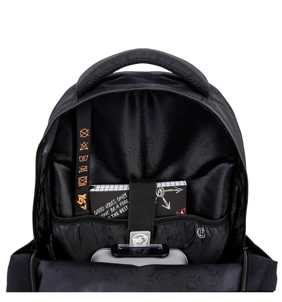 Рюкзак TS-48 від бренду Yes має два просторих відділення для розміщення всіх необхідних речей: підручників, зошитів, а також, наприклад, спортивної форми для відвідування фітнес клубу після школи. Якщо треба взяти з собою планшет або ноутбук, у середині є кишеня з захисною флісовою підкладкою спеціально для гаджетів. І, звичайно, кишеня для телефону.