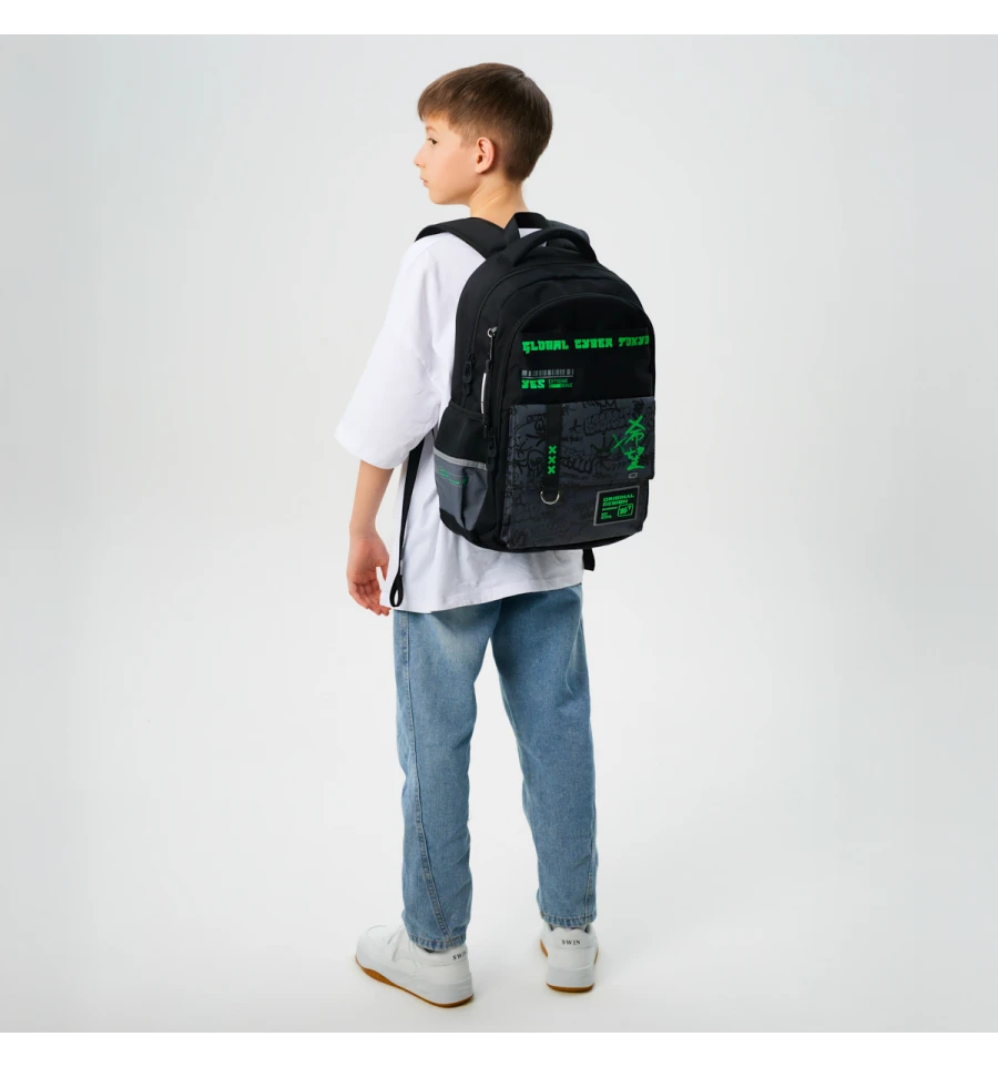- 2 просторі передні кишені для шкільного приладдя, пеналу та інших речей невеликого розміру;