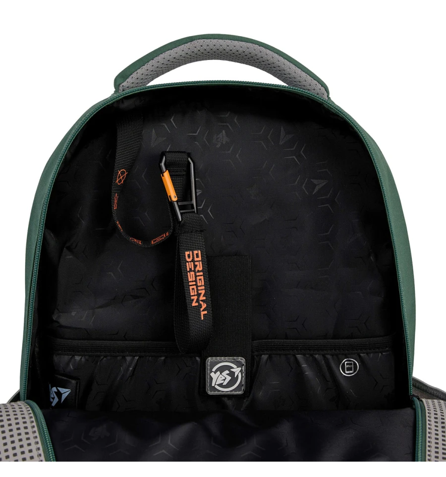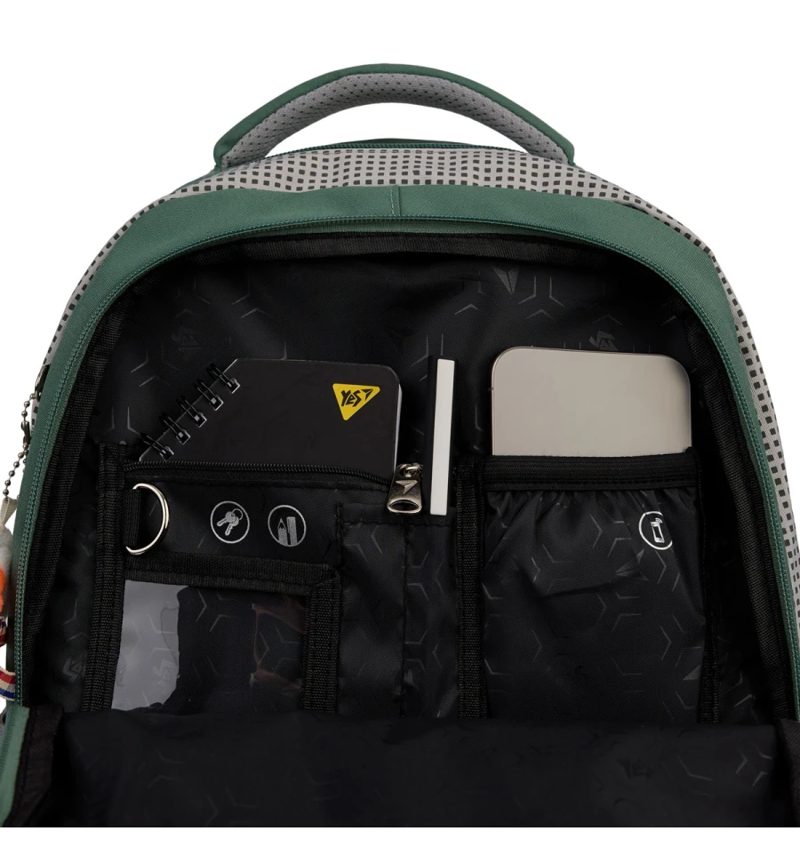 Рюкзак TS-48 від бренду Yes має два просторих відділення для розміщення всіх необхідних речей: підручників, зошитів, а також, наприклад, спортивної форми для відвідування фітнес клубу після школи. Якщо треба взяти з собою планшет або ноутбук, у середині є кишеня з захисною флісовою підкладкою спеціально для гаджетів. І, звичайно, кишеня для телефону.