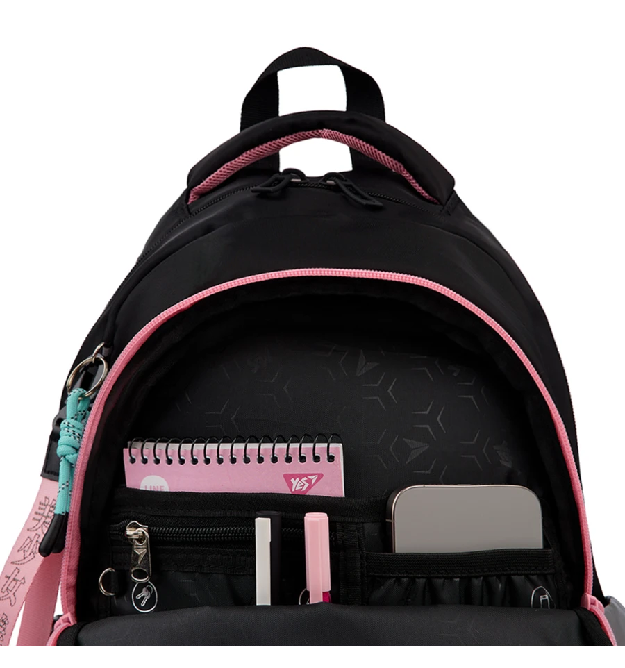 Рюкзак TS-54 від бренду Yes має два основні відділення та простору кишеню на передній панелі. Зошити, підручники, шкільні папки, пенал зручно розмістяться всередині. Для телефону та планшету передбачені внутрішні кишені з флісовою підкладкою. Для документів або інших дрібних речей – внутрішні кишені на блискавці.