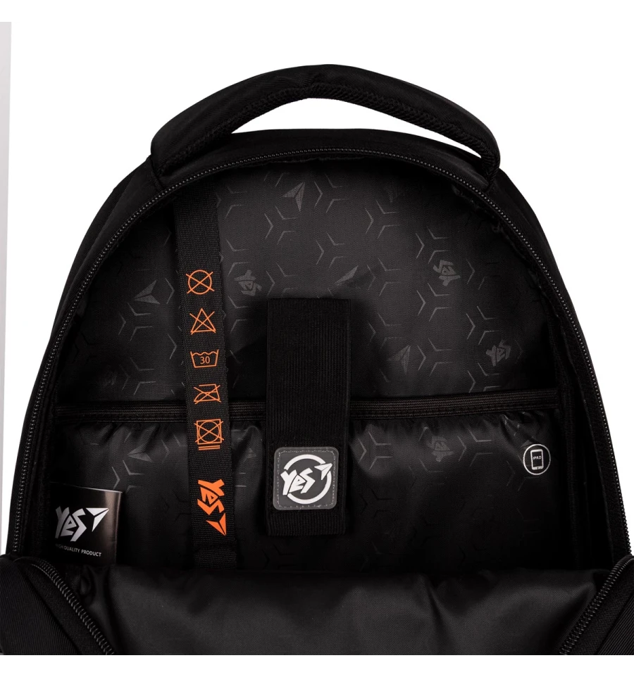 Рюкзак TS-54 від бренду Yes має два основні відділення та простору кишеню на передній панелі. Зошити, підручники, шкільні папки, пенал зручно розмістяться всередині. Для телефону та планшету передбачені внутрішні кишені з флісовою підкладкою. Для документів або інших дрібних речей – внутрішні кишені на блискавці.