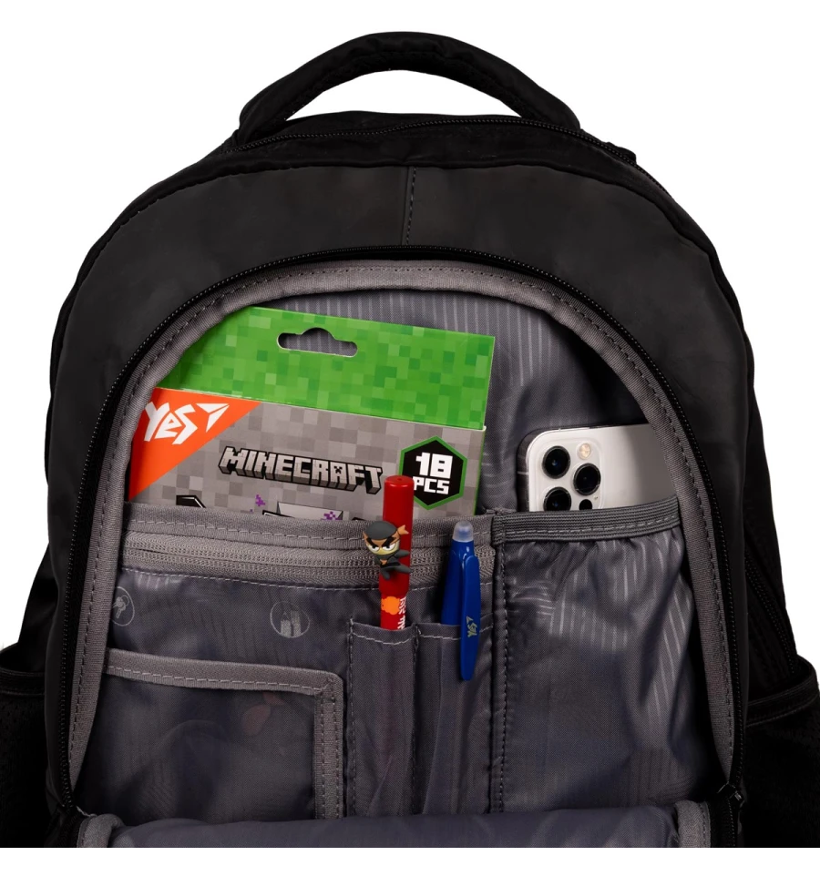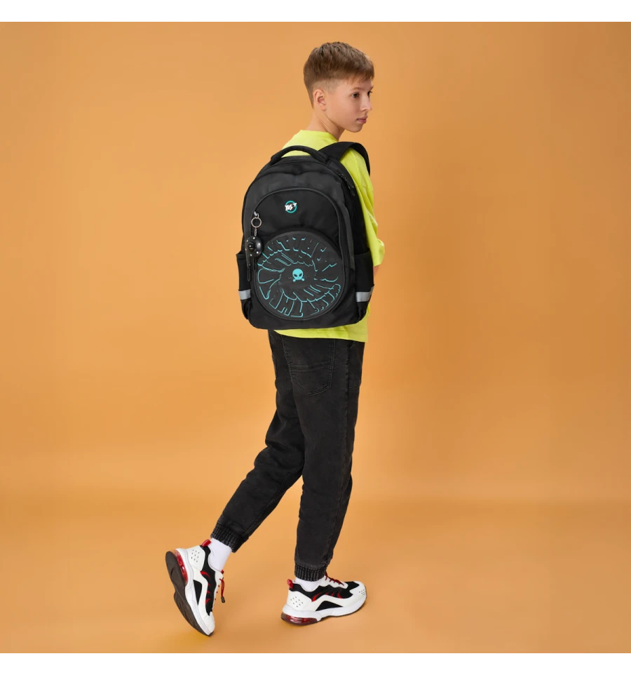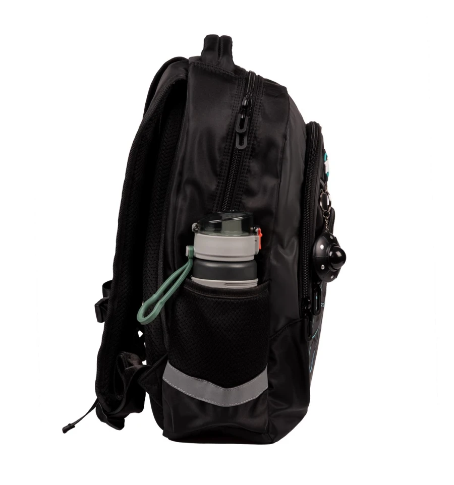 Два великих відділення, одна містка передня кишеня, ретельно розроблений внутрішній органайзер допоможуть тримати у порядку всі шкільні речі та канцелярське приладдя. В бокових кишенях розміститься пляшка з водою або термос, а також інші дрібні речі.