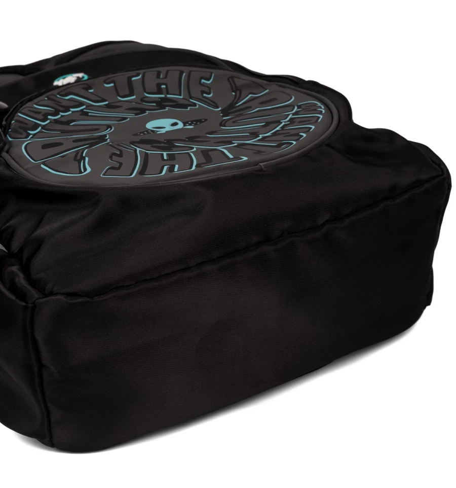 Поєднання чорного кольору рюкзака з тканиною з ефектом відбивання світла, стильний брелок – все це створює цікавий і неординарний образ.