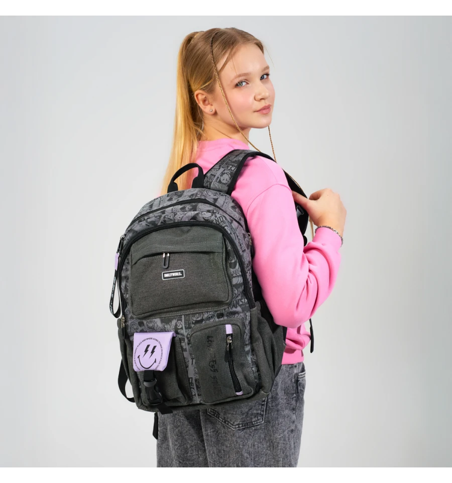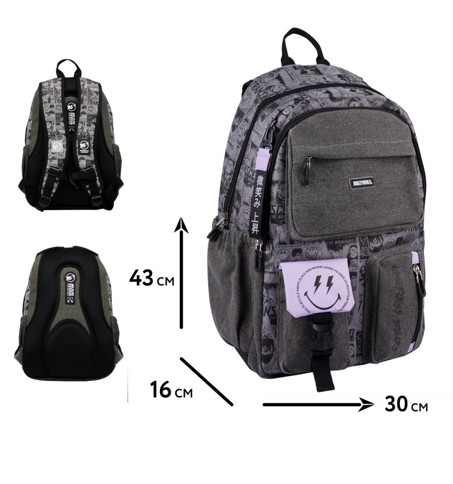 Рюкзак Yes TS-43 Anime Smiley World з ефектним поєднанням сірого кольору та чорного принта в стилі аніме – ідеальний вибір для підлітків. Дизайн доповнений яскравими елементами, що надають йому унікальності та привертають увагу.