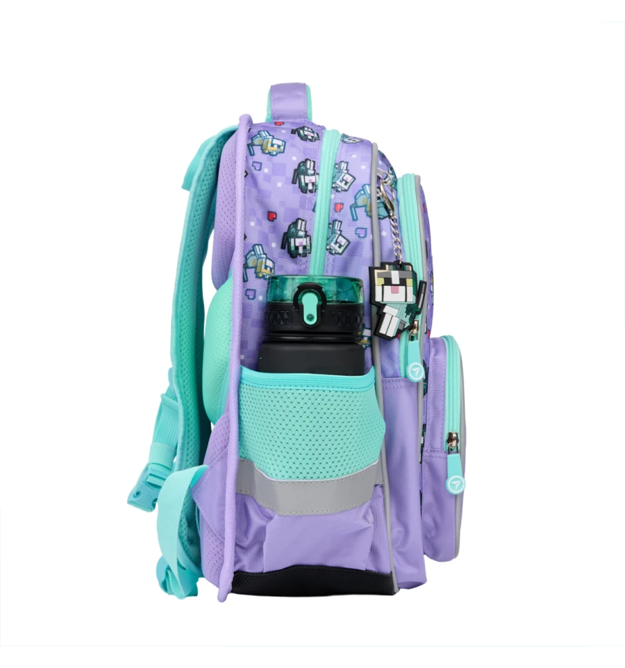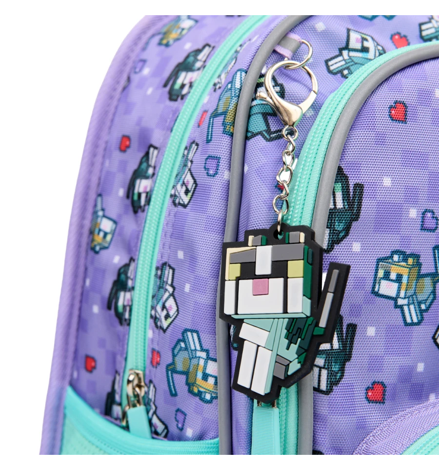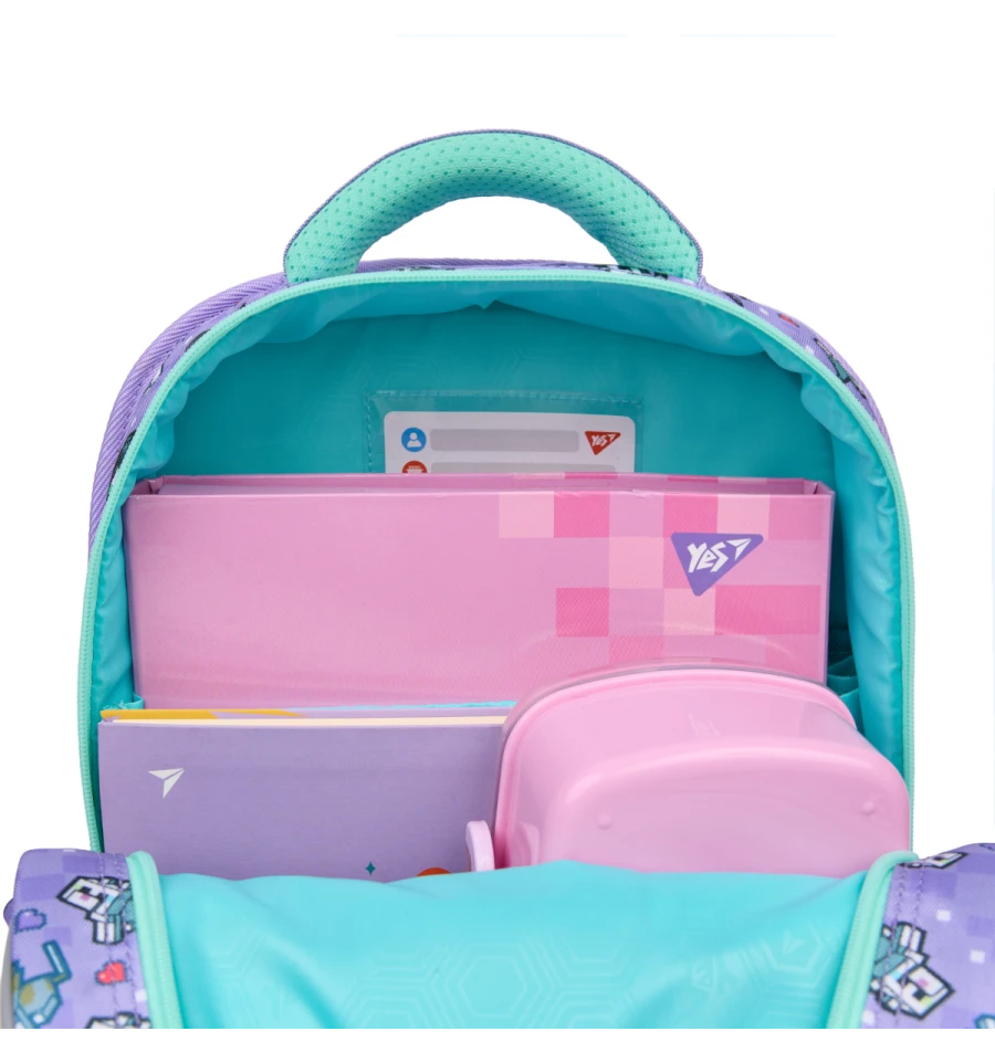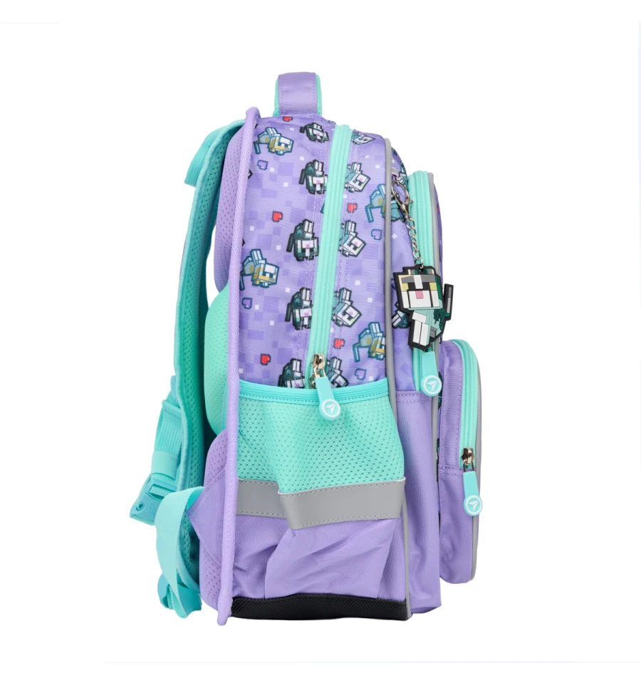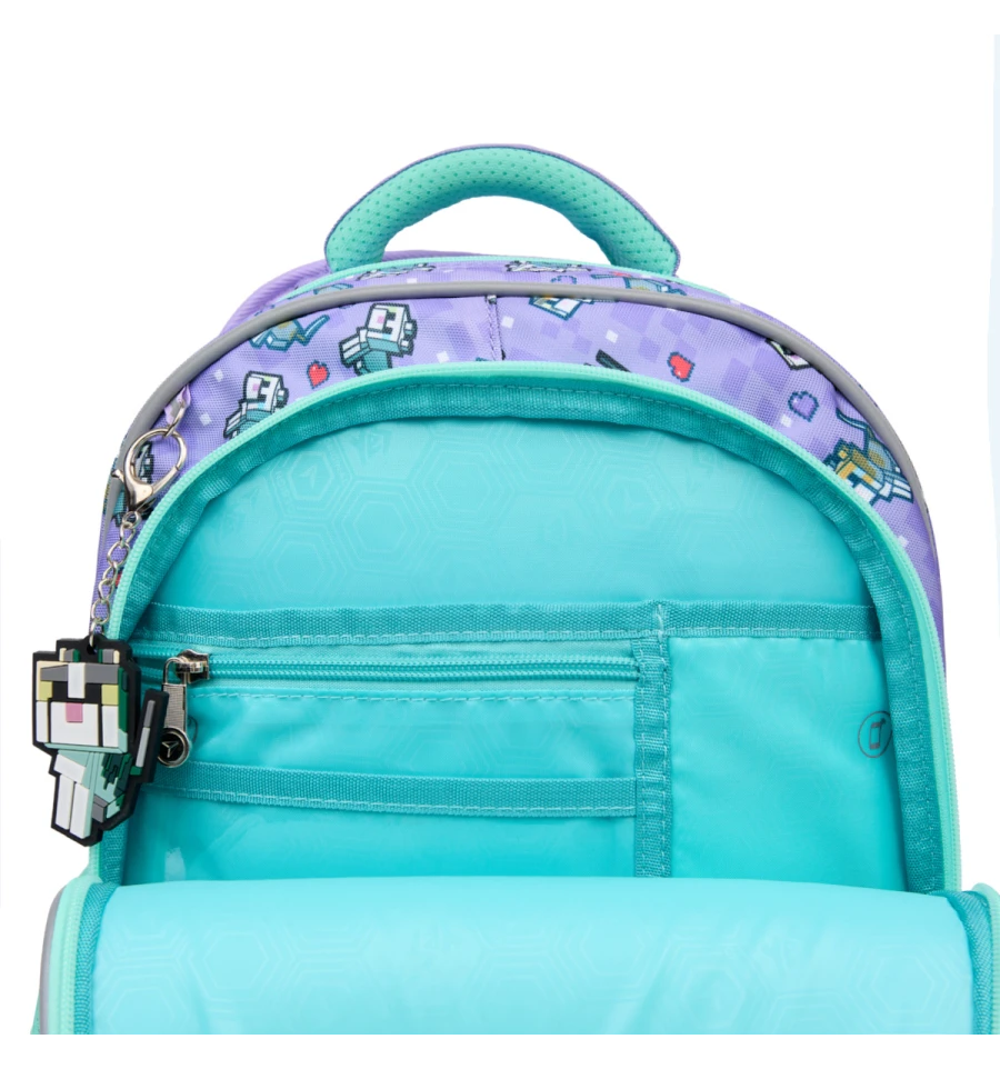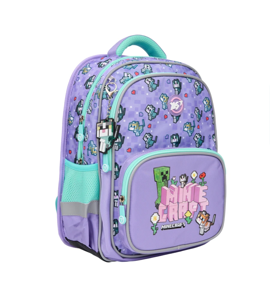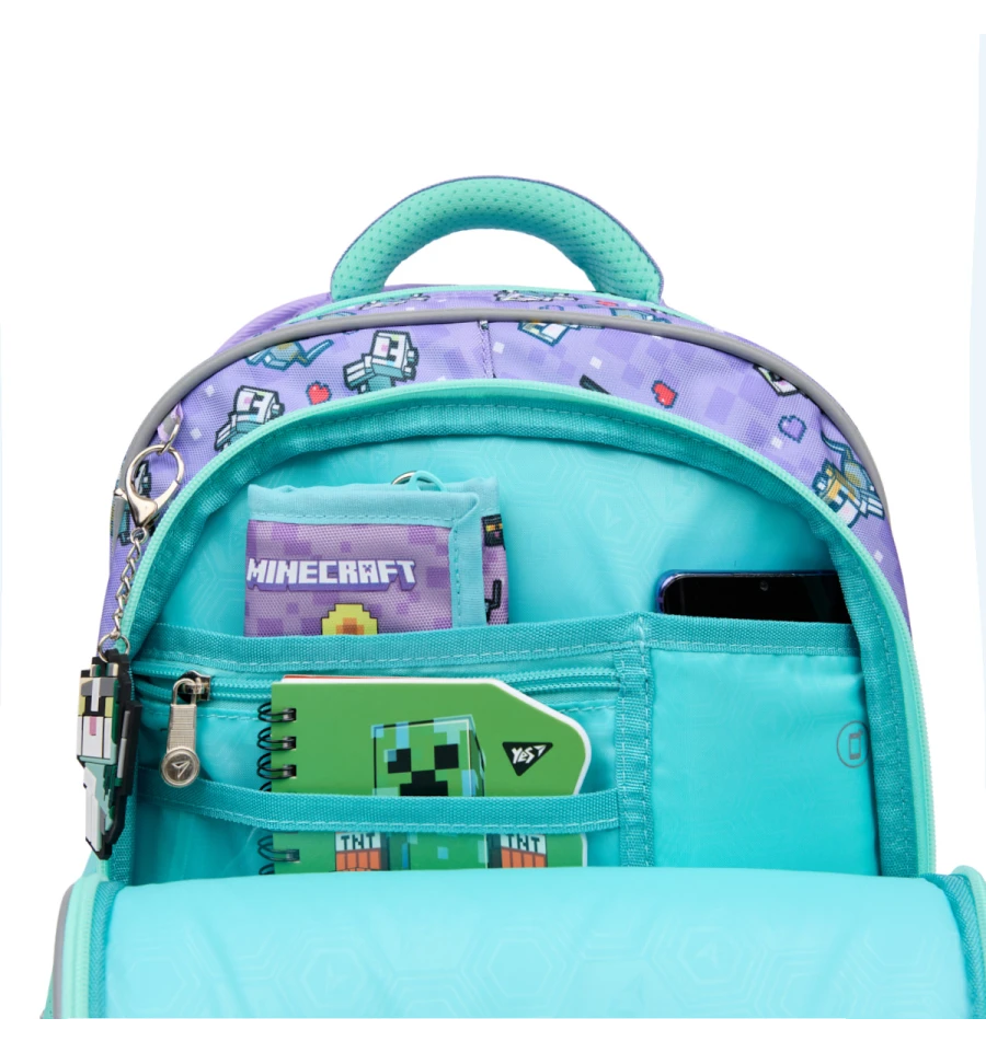 Рюкзак YES S-72 Minecraft Pinky із піксельними персонажами та тематичним брелоком з улюбленого віртуального світу Майнкрафт відображає захоплення юної школярки мега-популярною грою.
