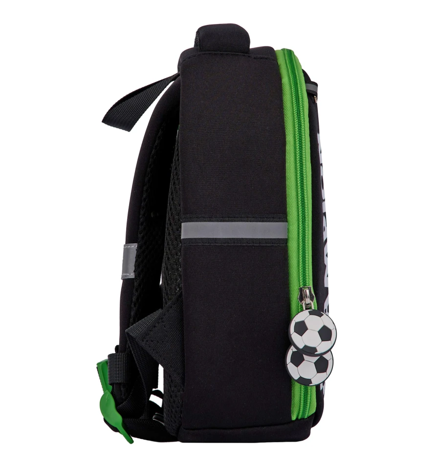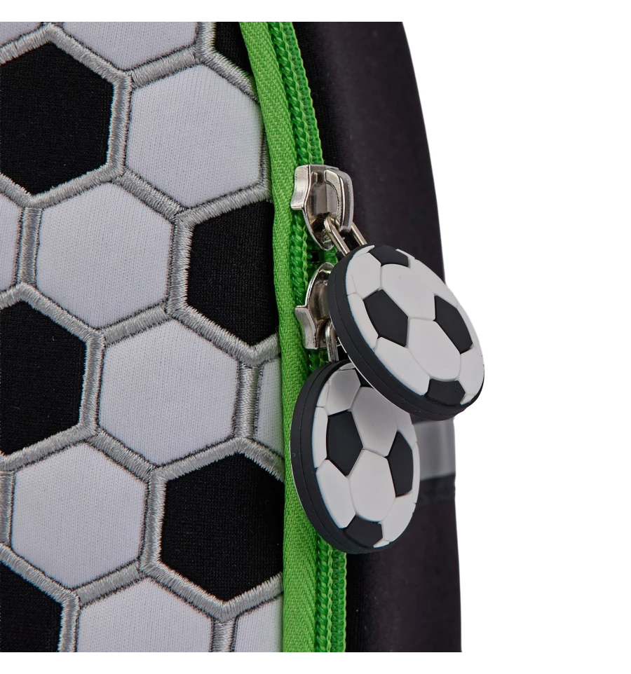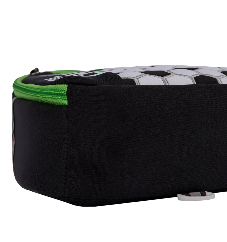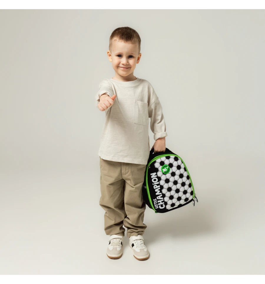 Імітація поверхні м’яча на передній панелі рюкзака неодмінно сподобається юному фану футбола.