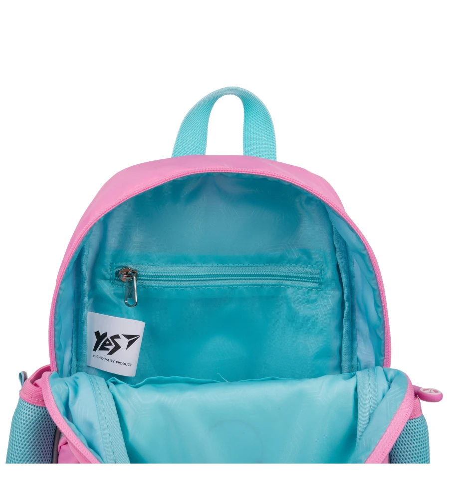 Дитячий рюкзак K-34 від бренду Yes має одне основне відділення на блискавці, передню кишеню та дві бокові кишені. Всередині дитячого рюкзачка K-34 від бренду Yes передбачено дві додаткових відкритих кишеньки та одна кишенька на блискавці. Така організація внутрішнього простору допоможе розмістити речі необхідні у дитячому садочку та навіть для відвідування підготовчих занять до школи.