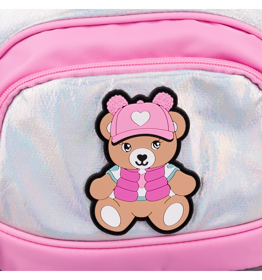 Дизайн з милим ведмежатком та використання матеріалу з перламутровим блиском неодмінно приверне увагу малечі.