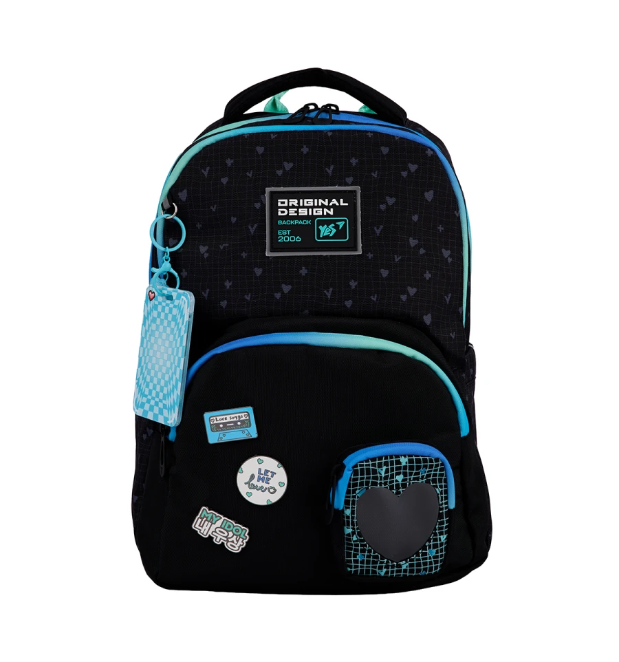 Шкільний рюкзак Yes TS-57 Hearty - це стиль та емоційність в одному! Яскравий дизайн, що запам‘ятовується, підкреслить індивідуальність і подарує заряд позитиву на весь день. У додаткову кишеньку можна покласти невеличкі, але необхідні речі. Значки та стильний брелок для ID картки доповнюють образ.