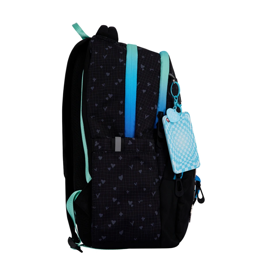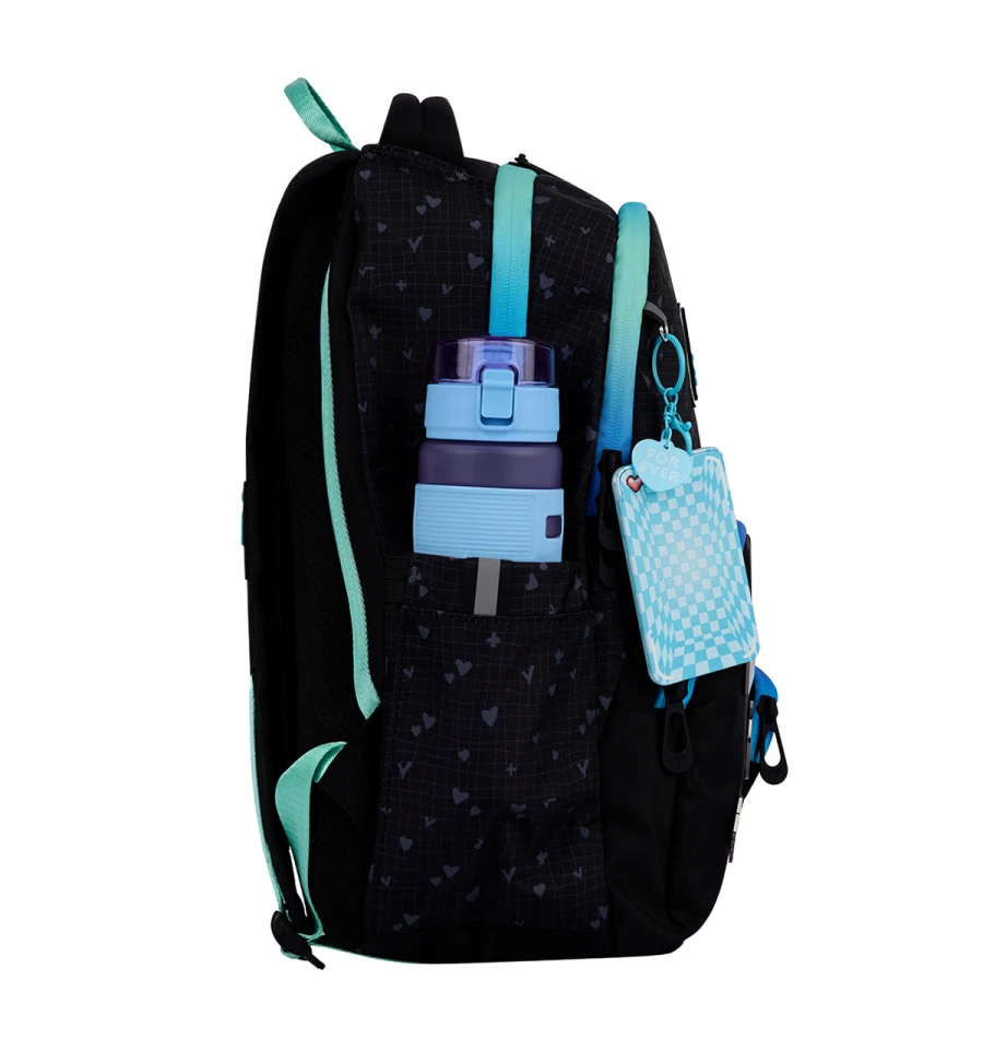 Два великих відділення, одна містка передня кишеня, ретельно розроблений внутрішній органайзер допоможуть тримати у порядку всі шкільні речі та канцелярське приладдя. В бокових кишенях розміститься пляшка з водою або термос, а також інші дрібні речі.