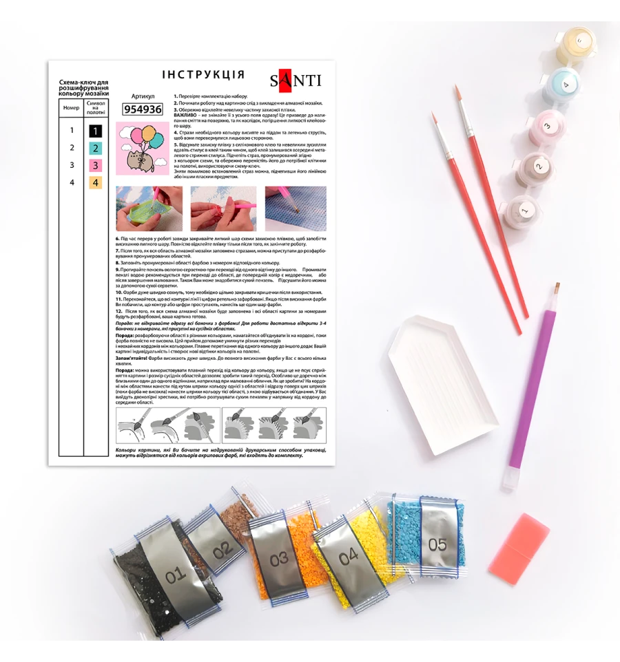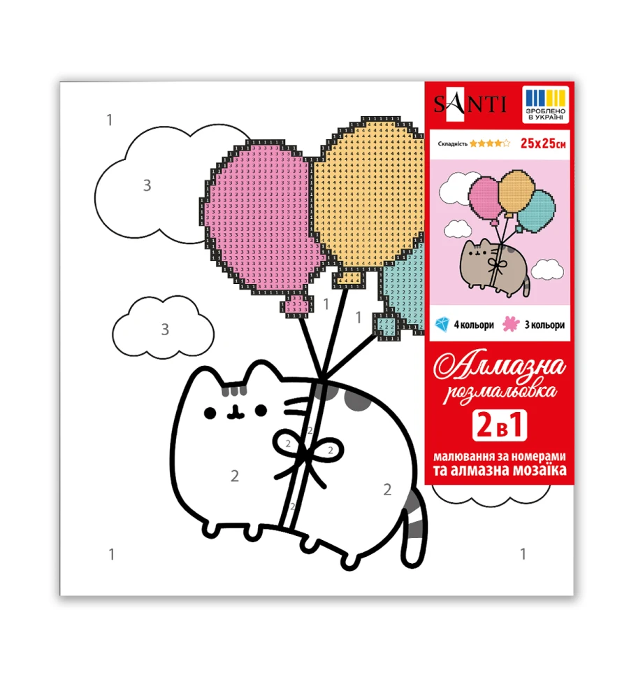 Картина за номерами з алмазною мозаїкою ТМ SANTI "Пушин. Політ на повітряних кульках" виготовлена з натуральних, екологічно чистих матеріалів, що робить малювання комфортним і безпечним навіть для найменших художників.