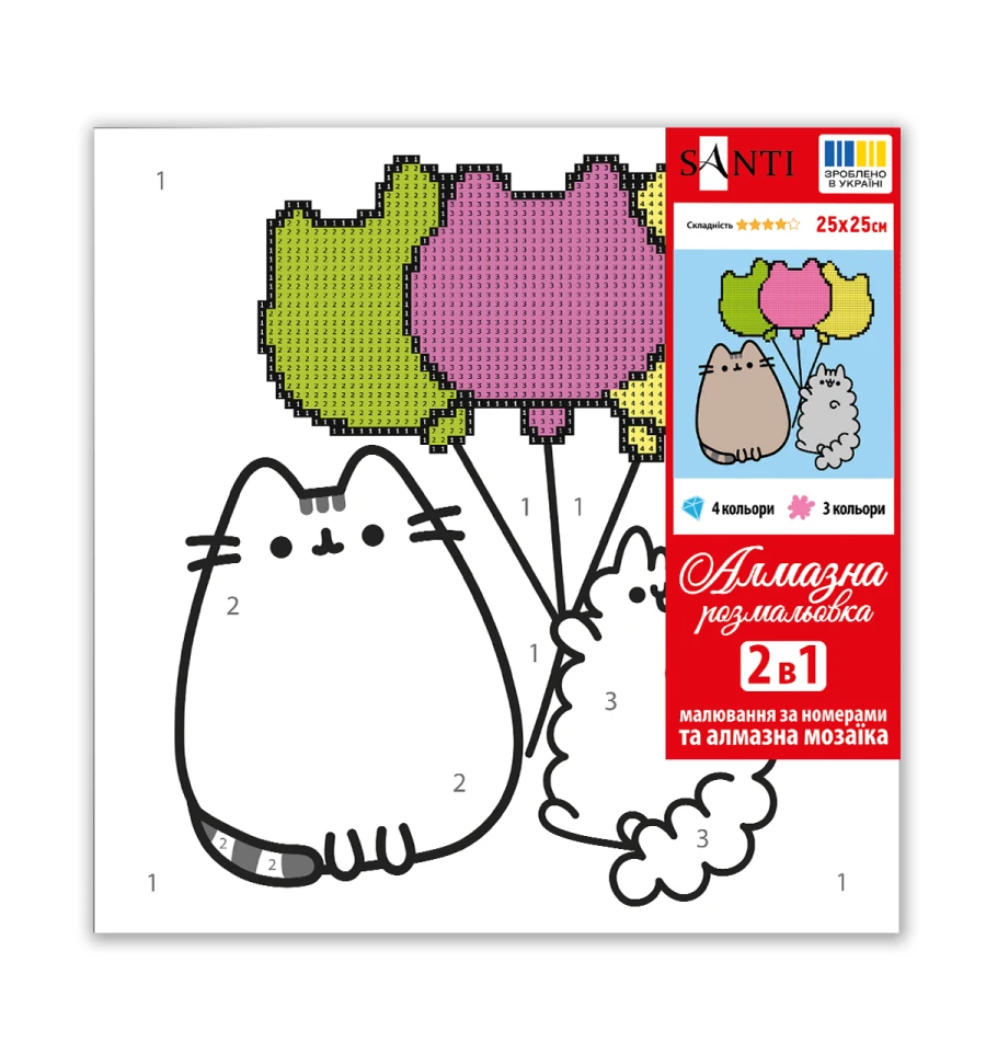 Картина за номерами з алмазною мозаїкою ТМ SANTI "Пушин. Друзі та повітряні кульки" виготовлена з натуральних, екологічно чистих матеріалів, що робить малювання комфортним і безпечним навіть для найменших художників.