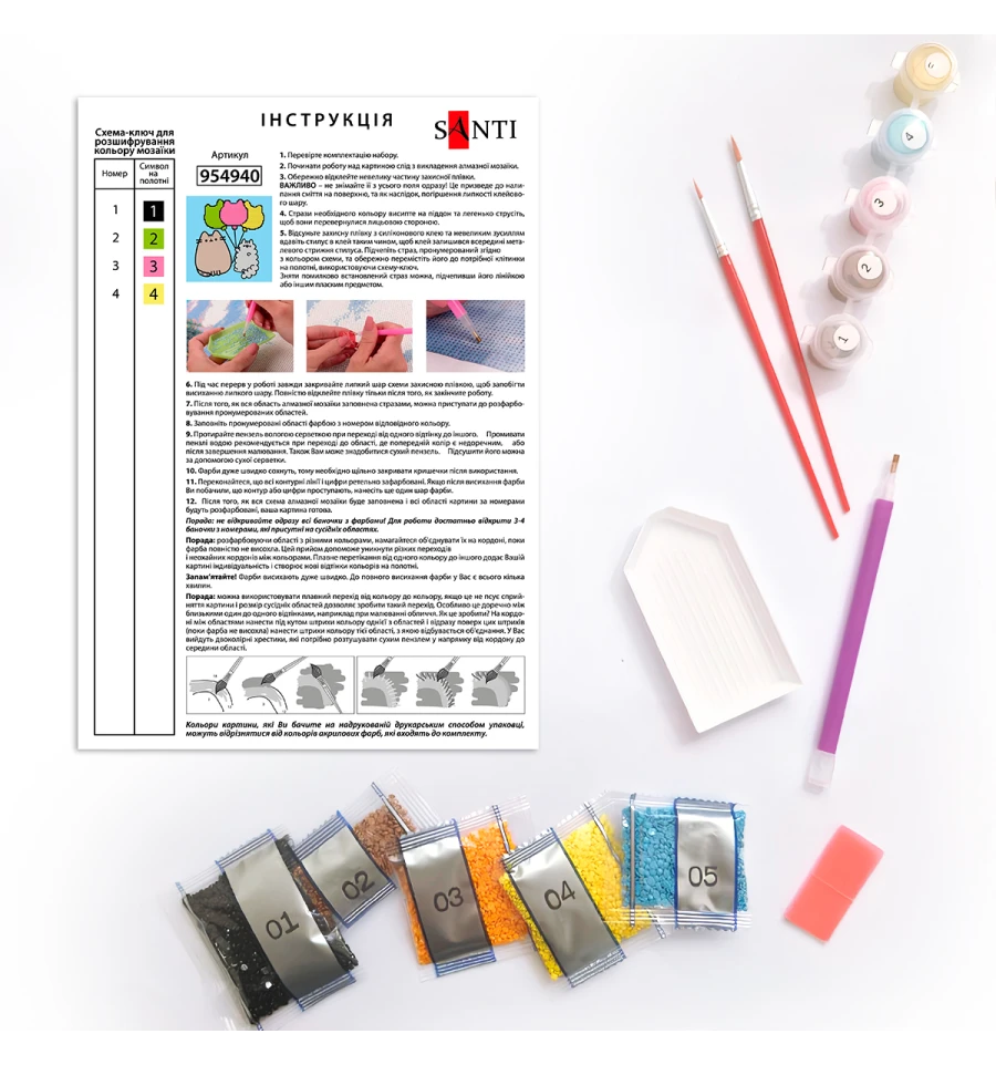 • круглі стрази, розфасовані у пронумеровані пакетики