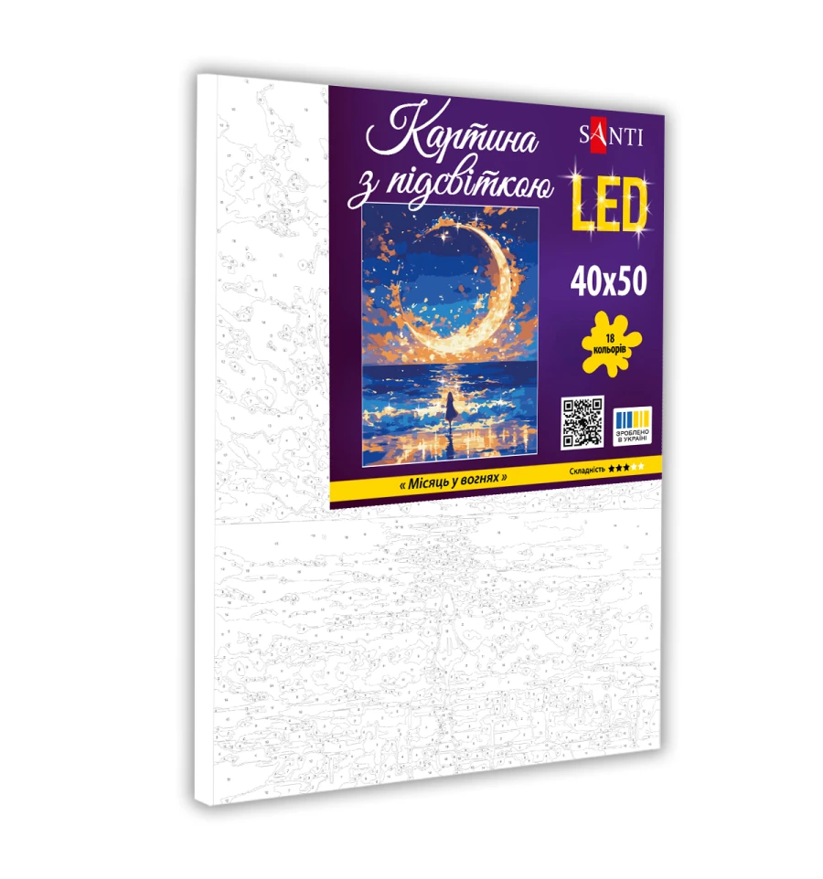 Відчути себе справжнім художником можливо навіть якщо ви ніколи не брали до рук пензель. Картини за номерами від бренду SANTI з LED підсвіткою створені саме для того, щоб ви захоплююче провели свій час, розвинули творчі здібності та отримали чудовий витвір мистецтва, створений власноруч. Набір для малювання SANTI допоможе створювати дивовижні сюжети, слідуючи пронумерованим контурам на полотні та використовуючи якісні акрилові фарби.