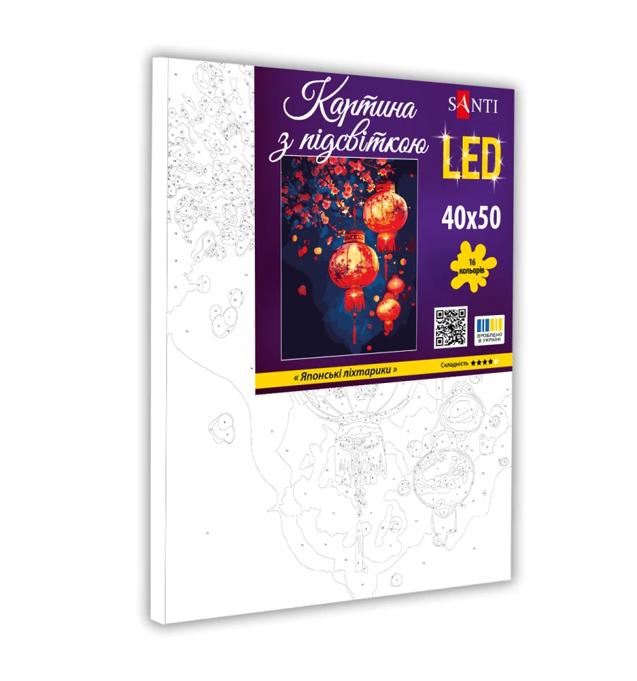 Відчути себе справжнім художником можливо навіть якщо ви ніколи не брали до рук пензель. Картини за номерами від бренду SANTI з LED підсвіткою створені саме для того, щоб ви захоплююче провели свій час, розвинули творчі здібності та отримали чудовий витвір мистецтва, створений власноруч. Набір для малювання SANTI допоможе створювати дивовижні сюжети, слідуючи пронумерованим контурам на полотні та використовуючи якісні акрилові фарби.