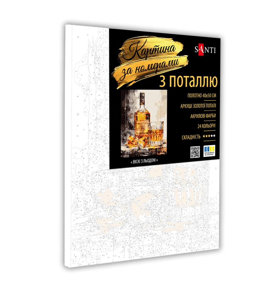 Картина за номерами "Віскі з льодом" ТМ SANTI з поталлю – це чудовий подарунок для себе та ваших близьких!