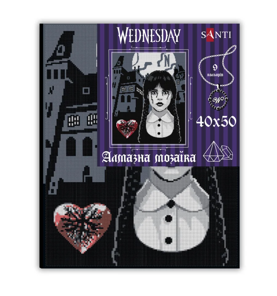 Створіть свій власний куточок Невермору, наповнений блиском та загадкою з алмазною мозаїкою Wednesday. Secrets of Nevermore ТМ SANTI!