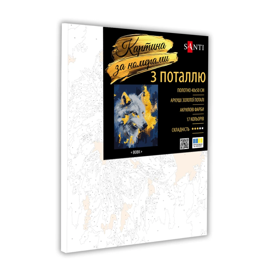 Картина за номерами "Вовк" ТМ SANTI з поталлю – це чудовий подарунок для себе та ваших близьких!