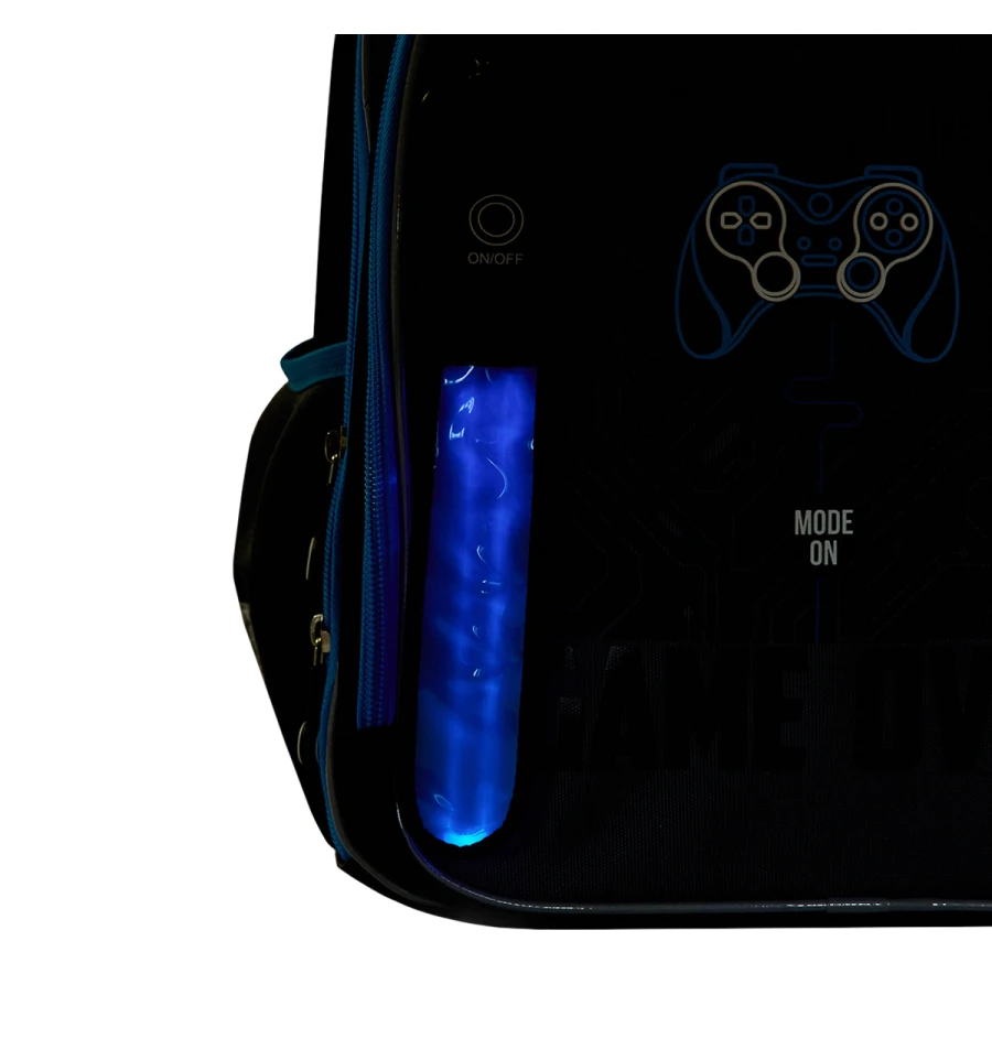 Шанувальники комп’ютерних ігор неодмінно вподобають рюкзак з відповідним принтом та тематичним брелоком з LED підсвіткою.