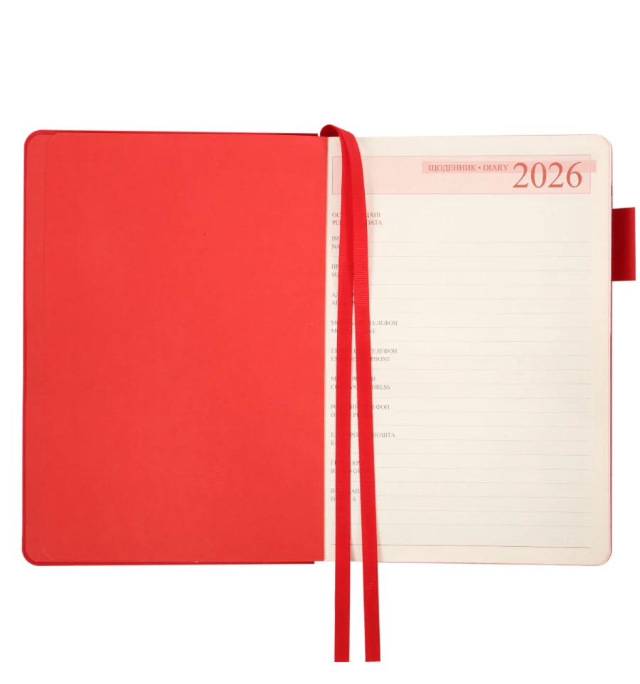 Щоденник А5 Leo Planner датований 2026 "Binario", м‘який, червоний, 368 сторінок
