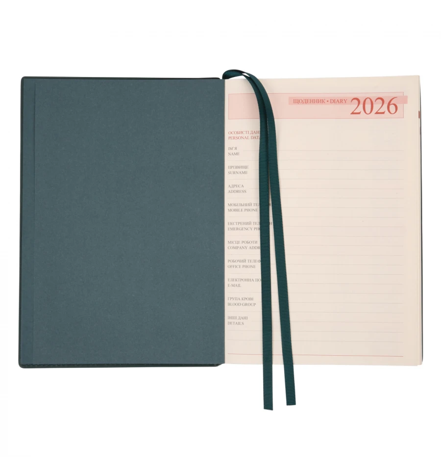 Щоденник А5 Leo Planner датований 2026 "Credo", інтегральний, смарагдовий, 368 сторінок