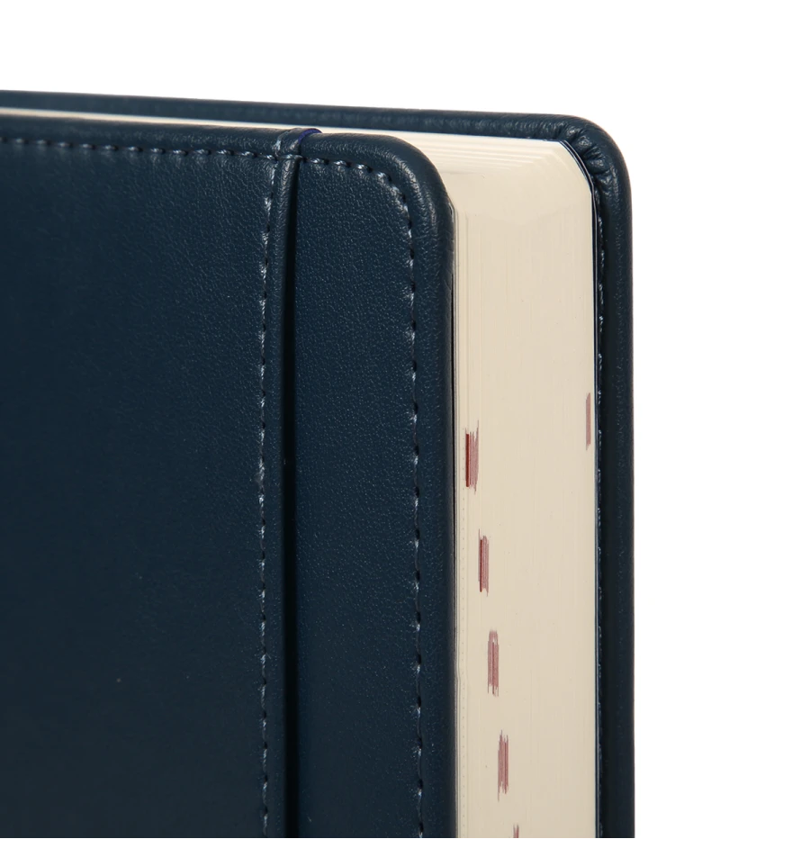 Паперовий блок продуманий до дрібниць для комфортного щоденного користування. Він налічує 368 сторінок, що забезпечує достатньо простору для щоденних записів, планів і нотаток. Папір щільністю 80 г/м² дозволяє комфортно писати ручкою чи олівцем без просвічування. Кремовий папір не втомлює очі навіть за тривалої роботи. Закруглені кути паперового блока не лише додають стильного вигляду, а й запобігають швидкому зношенню сторінок. Це практичне рішення для збереження ділового записника охайним у щоденному користуванні. Перфоровані кути паперового блока дозволяють легко маркувати актуальну сторінку. Це зручний функціональний елемент, що допомагає швидко орієнтуватися у записах та тримати планування під контролем. Паперовий зріз у колір паперового блока – стримане класичне рішення, що підтримує загальну гармонію дизайну. Ідеально для тих, хто надає перевагу мінімалізму.
