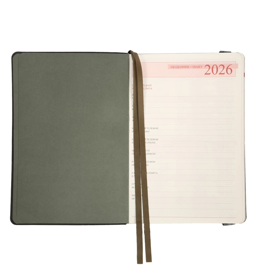 М’яка обкладинка легка та гнучка, тому щоденник зручно носити із собою щодня. Чудовий вибір для мобільного стилю життя. Якісний та зносостійкий PU-матеріал обкладинки забезпечить довготривалий презентабельний вигляд ділового записника, захистить від вологи та пилу. Обкладинка приємна на дотик, легко очищується і надає щоденнику стильного вигляду. Вертикальна резинка з принтом поєднує практичність і стильний акцент. Можливість персоналізації у вигляді сліпого тиснення – витончений спосіб додати індивідуальності. Ідеально для тих, хто цінує мінімалізм та стриману елегантність.