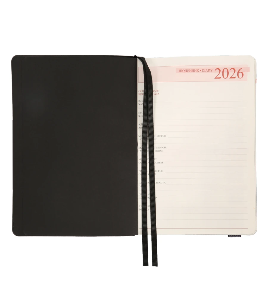 М’яка обкладинка легка та гнучка, тому щоденник зручно носити із собою щодня. Чудовий вибір для мобільного стилю життя. Якісний та зносостійкий PU-матеріал обкладинки забезпечить довготривалий презентабельний вигляд ділового записника, захистить від вологи та пилу. Обкладинка приємна на дотик, легко очищується і надає щоденнику стильного вигляду. Вертикальна резинка з принтом поєднує практичність і стильний акцент. Можливість персоналізації у вигляді сліпого тиснення – витончений спосіб додати індивідуальності. Ідеально для тих, хто цінує мінімалізм та стриману елегантність.