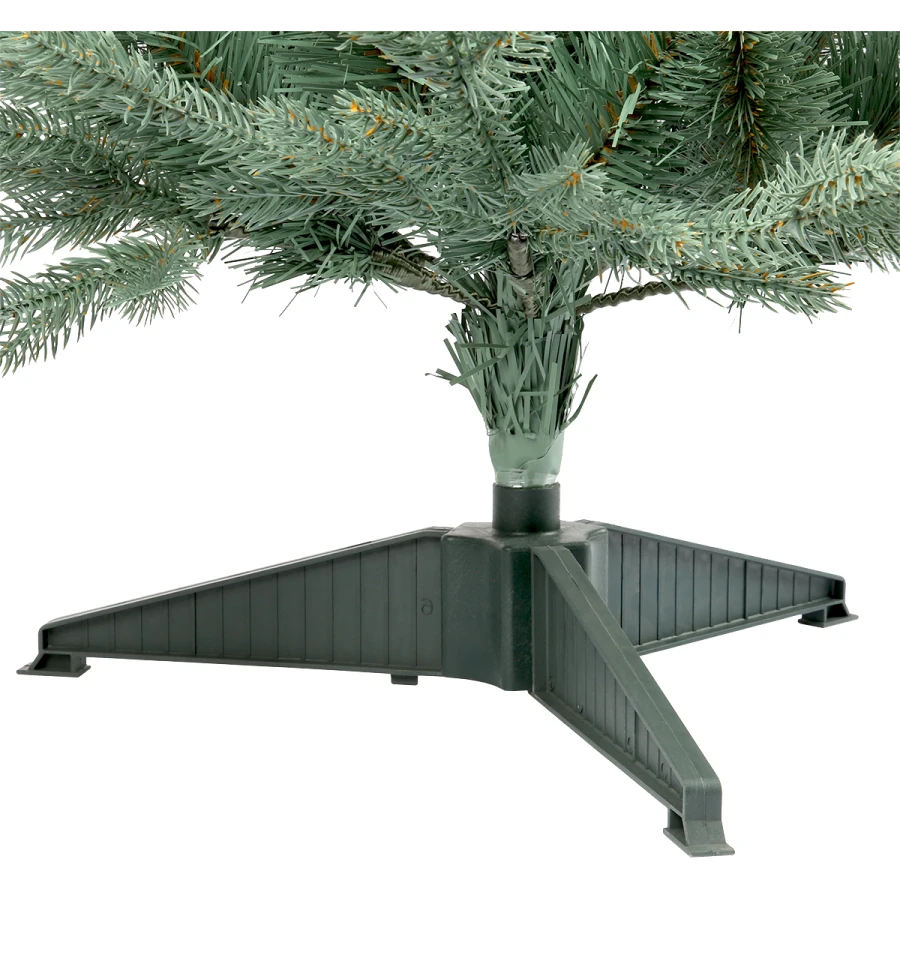 Штучна ялинка з литими гілками зеленого кольору, незамінний атрибут новорічного інтер‘єру. Всі матеріали екологічно чисті, мають протипожежні властивості. Великим плюсом штучної ялинки є її довговічність, а складання конструкції не забере багато часу. Гарне та пишне новорічне дерево щорічно наповнюватиме будинок радістю та благополуччям у різдвяний період. Матеріал: литі гілки блакитного кольору; основа металева трубка. Висота: 90 см. Стовбур їли цілісний. Підставка ялинки – це пластикова хрестовина.