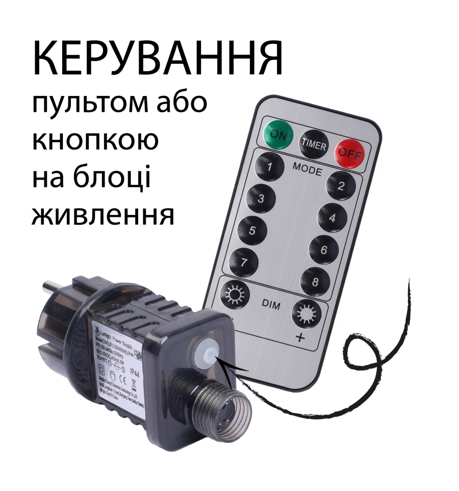 Режим таймера має запрограмовані часові проміжки: 8 годин (ввімкнено) та 16 годин (вимкнено). Увімкнення даного таймера режиму здійснюється одноразовим натисканням на кнопку при включеній гірлянді.