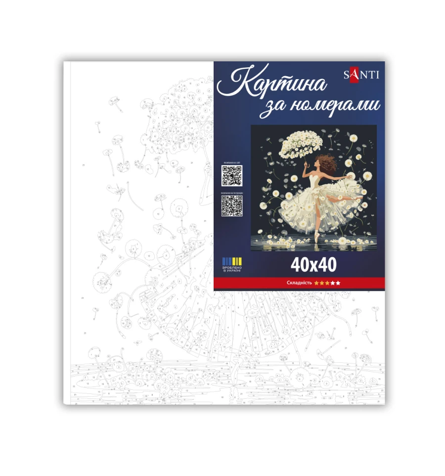 Картина за номерами ТМ SANTI Кульбаби і танцівниця - це чудова можливість захоплюючи провести час, розвинути творчі здібності та створити чудовий витвір мистецтва власними руками, а також чудовий подарунок для себе та своїх близьких!