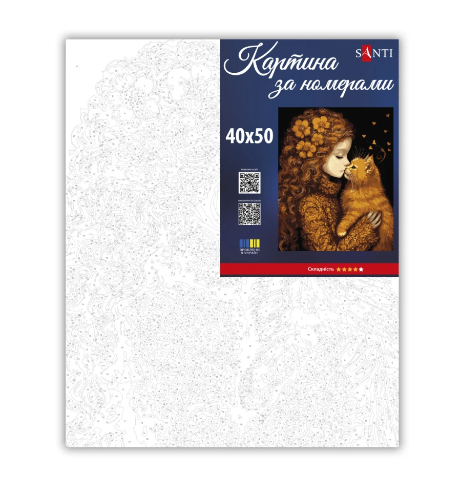 Картина за номерами ТМ SANTI Дівчинка та кошеня - це прекрасна можливість захопливо провести час, розвинути творчі здібності та створити вражаючий витвір мистецтва власними руками, а також чудовий подарунок для себе чи своїх близьких!