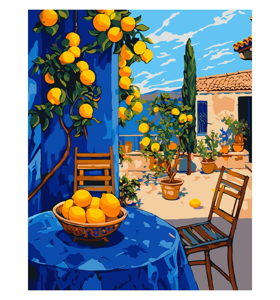 Картина за номерами ТМ SANTI Лимонний дворик - це прекрасна можливість захопливо провести час, розвинути творчі здібності та створити вражаючий витвір мистецтва власними руками, а також чудовий подарунок для себе чи своїх близьких!