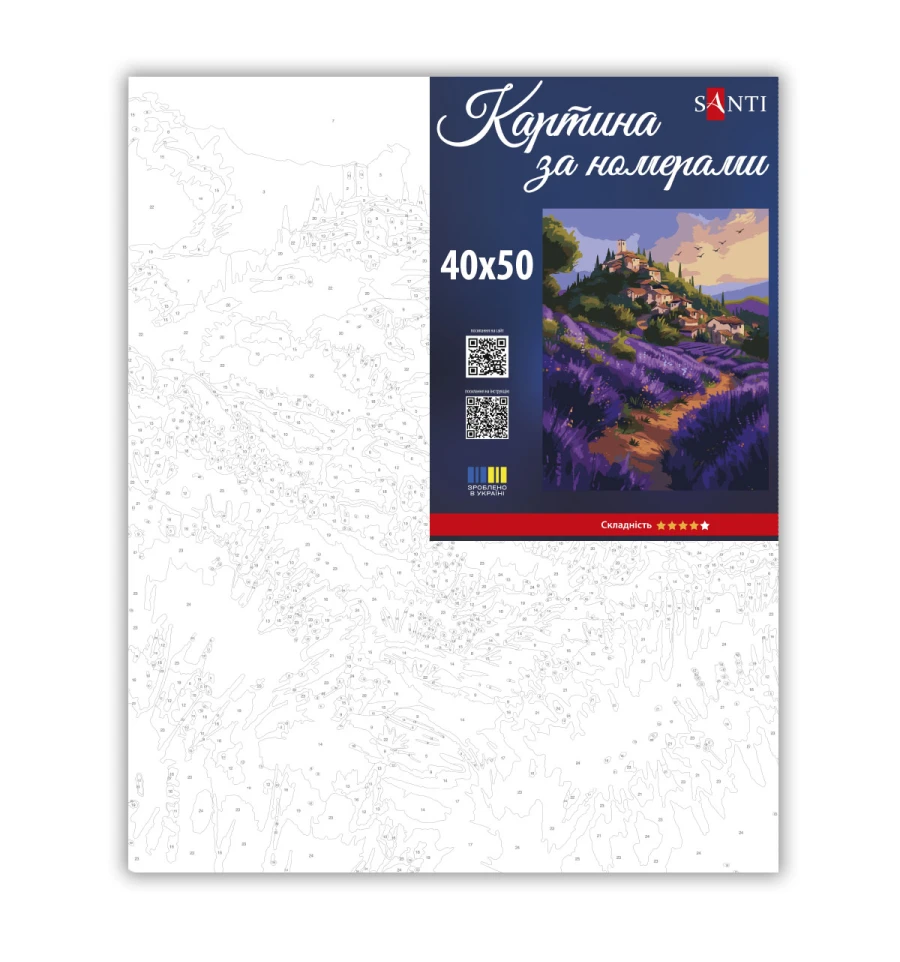 Картина за номерами ТМ SANTI Лаванда Провансу - це прекрасна можливість захопливо провести час, розвинути творчі здібності та створити вражаючий витвір мистецтва власними руками, а також чудовий подарунок для себе чи своїх близьких!