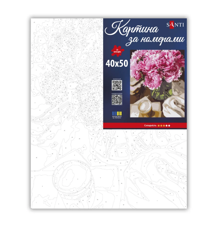 Картина за номерами ТМ SANTI Півонії та ранок - це прекрасна можливість захопливо провести час, розвинути творчі здібності та створити вражаючий витвір мистецтва власними руками, а також чудовий подарунок для себе чи своїх близьких!