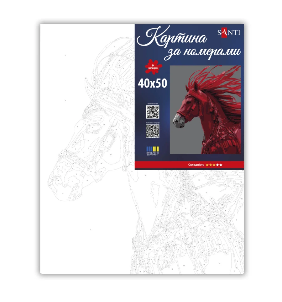 Картина за номерами ТМ SANTI Червоний кінь - це прекрасна можливість захопливо провести час, розвинути творчі здібності та створити вражаючий витвір мистецтва власними руками, а також чудовий подарунок для себе чи своїх близьких!