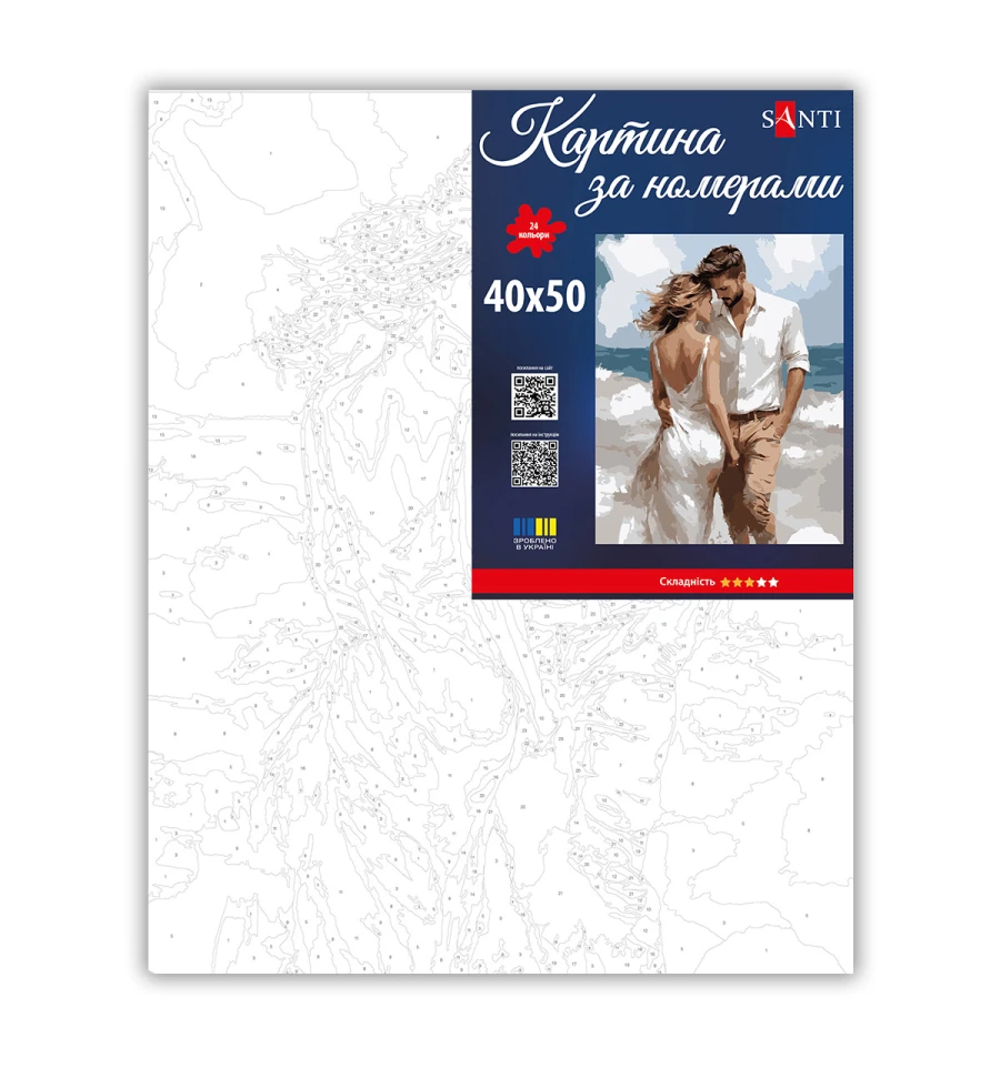 Картина за номерами ТМ SANTI Романтична пара - це прекрасна можливість захопливо провести час, розвинути творчі здібності та створити вражаючий витвір мистецтва власними руками, а також чудовий подарунок для себе чи своїх близьких!
