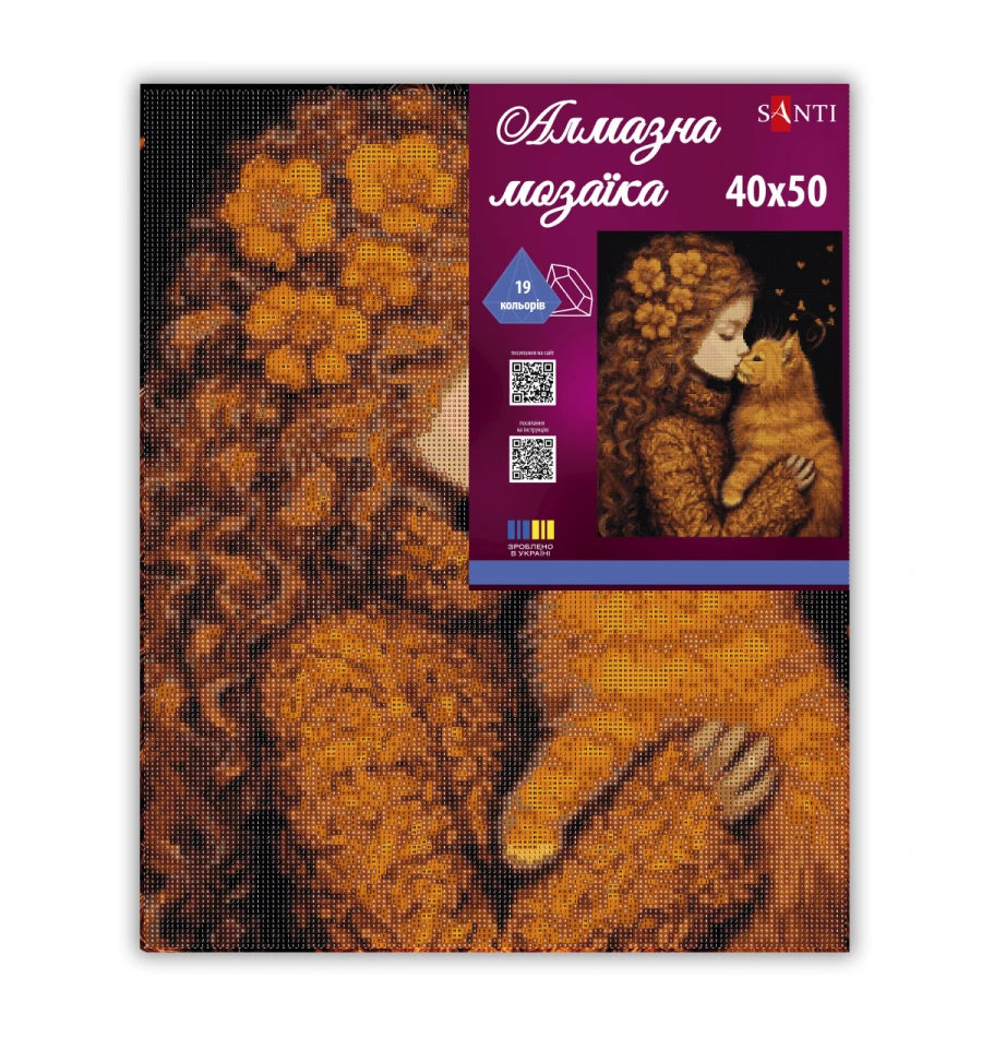 Пориньте в атмосферу натхнення та творчості з алмазною мозаїкою Дівчинка та кошеня ТМ SANTI! Алмазна мозаїка – творчість, яка не вимагає спеціальних навичок і досвіду, проста і цікава техніка, яку легко освоїть кожен. Процес викладання страз діє як арт-терапія: допомагає розслабитися, зняти стрес, даруючи задоволення від кожного відблиску та переливу.