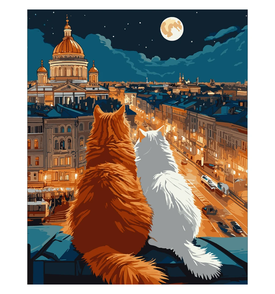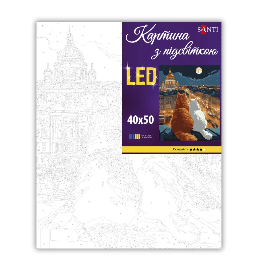 Картина за номерами ТМ SANTI Коти на даху з LED підсвіткой – це чудовий подарунок для себе та ваших близьких!