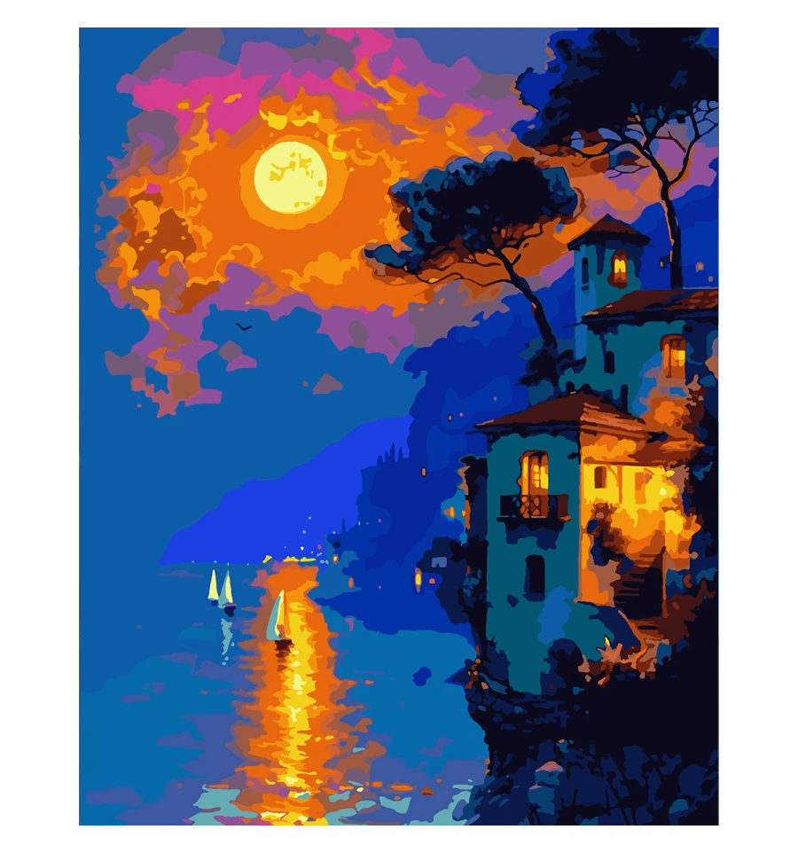 Картина за номерами ТМ SANTI Захід сонця на узбережжі з LED підсвіткой – це чудовий подарунок для себе та ваших близьких!