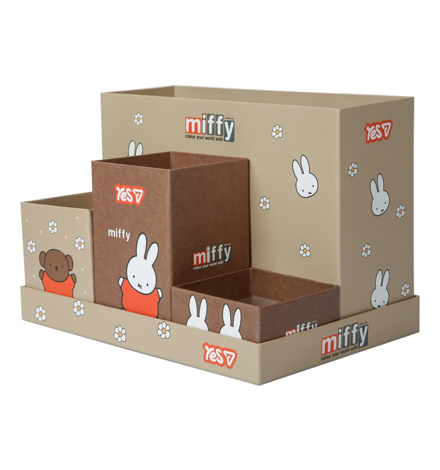Набір настільних органайзерів на 5 предметів в стильній популярній ліцензії Miffy допоможе організувати робочий лад на столі школяра. Кожна важлива дрібничка знайде своє місце і буде завжди під рукою.