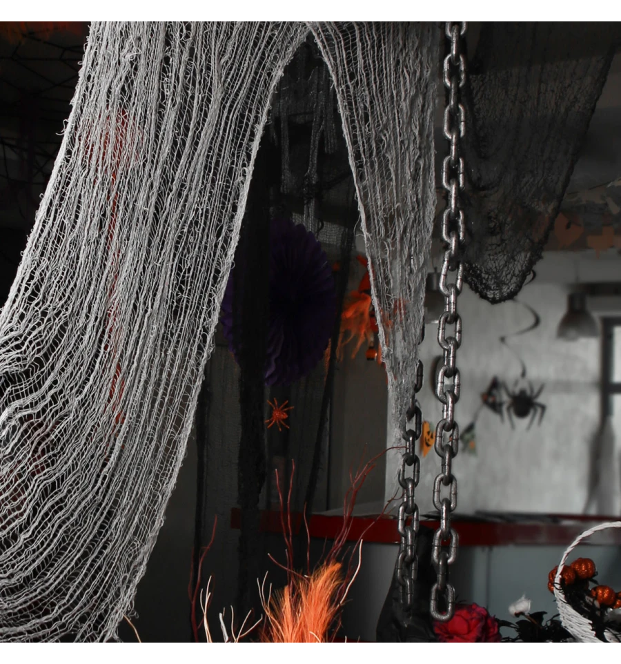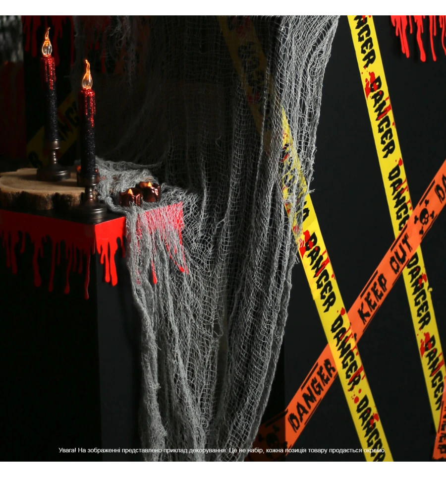 Тканина сітчаста "Creepy Cloth" призначена для декорування приміщення до Хелловіну, для створення загадкових композицій, а також може використовуватися як аксесуар до святкового образу. Розмір: 76х270 см. Склад: поліестер.
