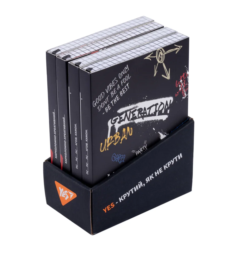 Щоденники колекції "Крутий, як крути", торгової марки Yes, в картонному дисплей боксі, мікс дизайнів.