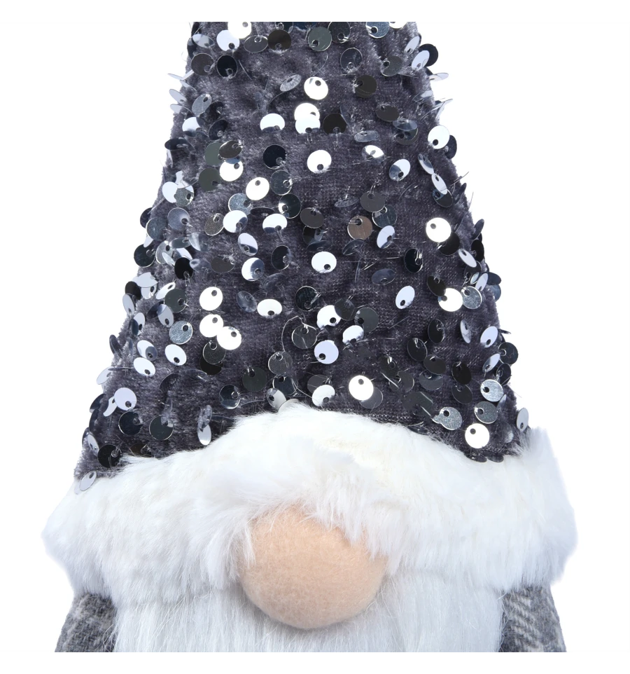 Зручна форма іграшки дозволяє легко посадити гнома на будь-яку поверхню - чи це полиця, камін, комод або місце під ялинкою. Він гармонійно доповнить святковий інтер‘єр, додавши йому затишку та яскравого новорічного блиску. Його блискучий ковпак, прикрашений срібними паєтками, гарно мерехтить у світлі гірлянд, наповнюючи кімнату святковим сяйвом, який робить гнома виразним елементом декору, який сподобається і дітям, і дорослим.