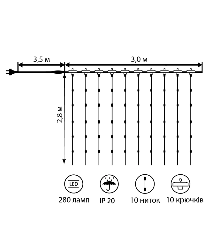 Електрогір. штора Novogod‘ko на мідн.дроті, 280 LED, багатокол., 3*2,8 м, стат.св.